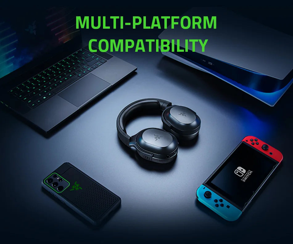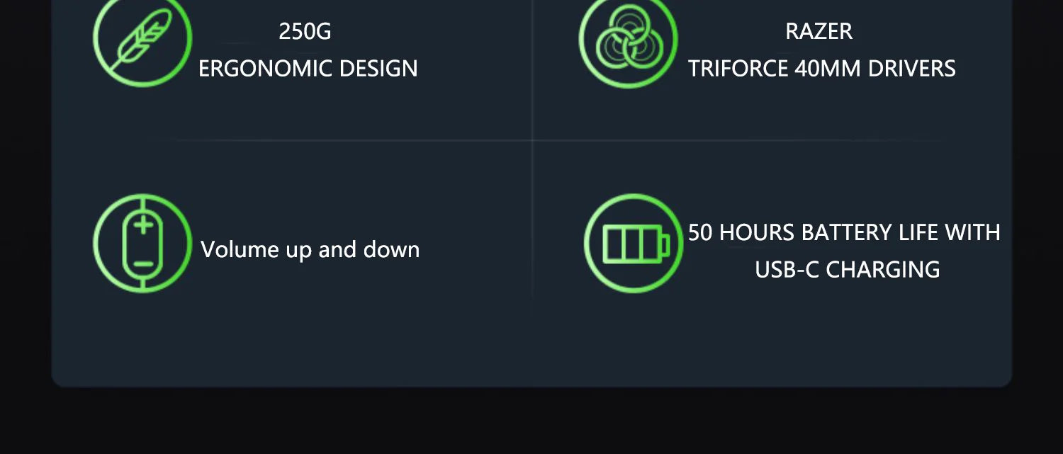 USB-C Wireless + Bluetooth Wireless Multi-Platform Connectivity, 250 g Ergonomic Design, Razer™ TriForce 40mm Drivers,Battery Life 20 hrs, Volume up and down,Detachable HyperClear Cardioid Microphone,Multi-Platform Compatibility.