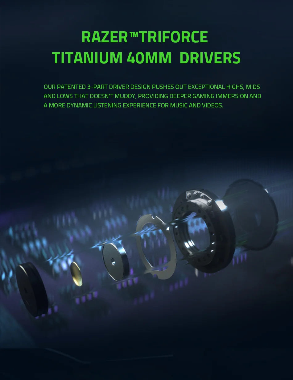 Our patented 3-part driver design pushes out exceptional highs, mids and lows that doesn’t muddy, providing deeper gaming immersion and a more dynamic listening experience for music and videos.