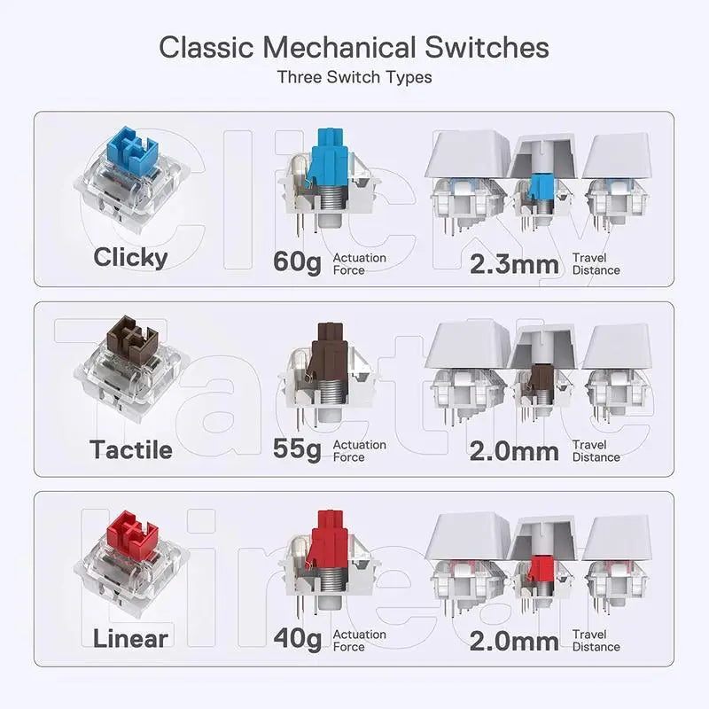 *Hot-Swappable Blue Switches: Distinctive tactile blue switch offers fantastic audile typing feedback. Hot-swappable with other Redragon switches. Made to last with switches rated for 50 million keypresses.